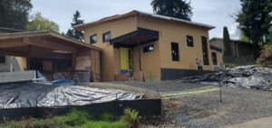 This 5-bed 4-bath house aiming for Passive House certification sits on a sloping forested site on Cougar Mountain. Features include aging in place, radiant floor heat, HRV, triple windows, CO2 heat pump, PV panels, solar hot water, and shou sugi ban siding. 8 minutes from I-90.
