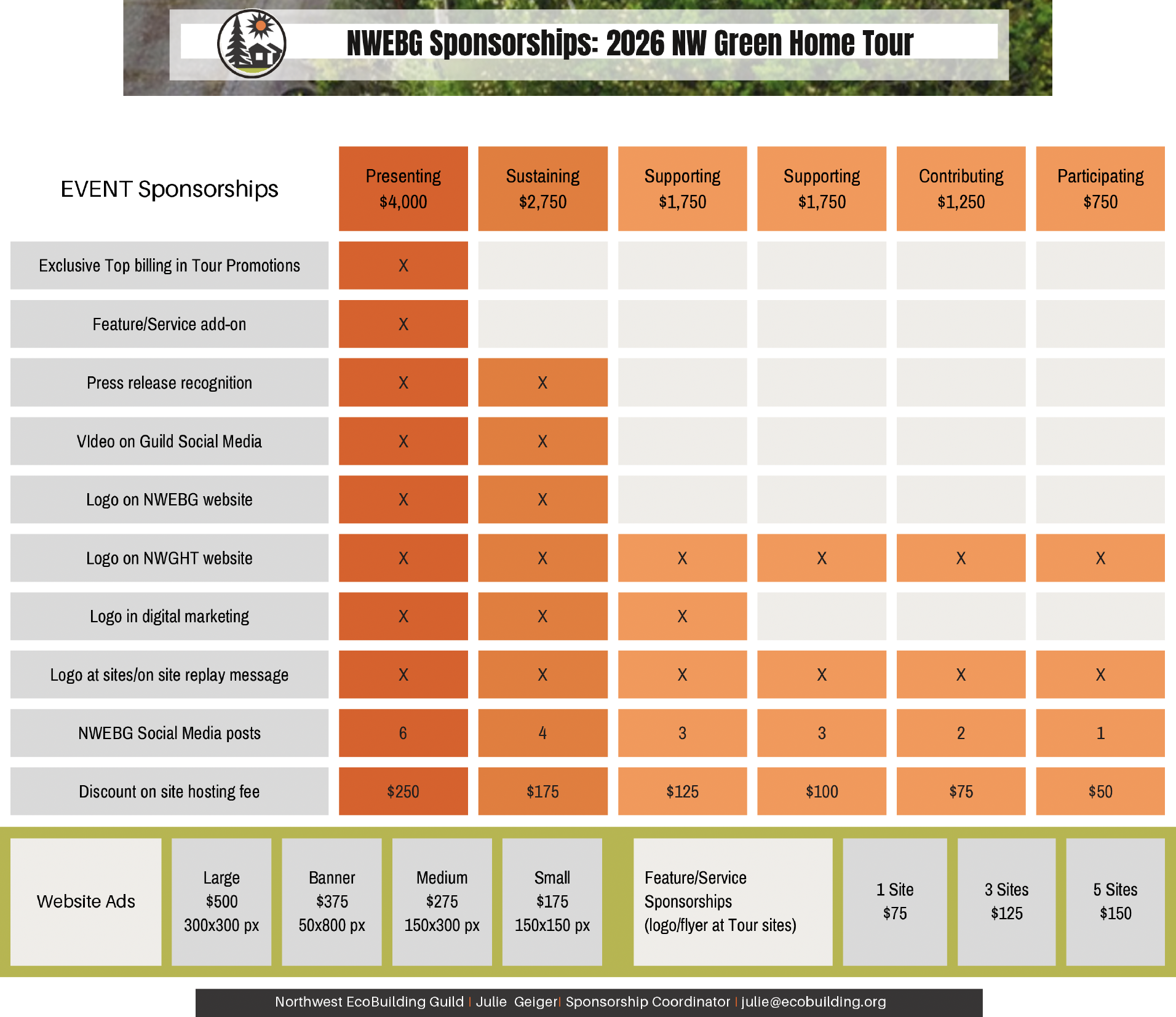 To learn more about the 2026 NWGHT sponsorship and its benefits, download the following NWEBG 2026 Sponsor Opportunities (NWGHT), or please send an email to Julie Geiger, Sponsorship Coordinator.