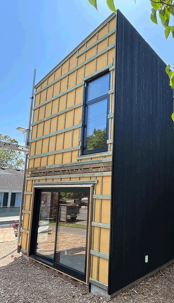 A 1-1/2″ rainscreen assembly to promote drainage and drying behind the cedar siding