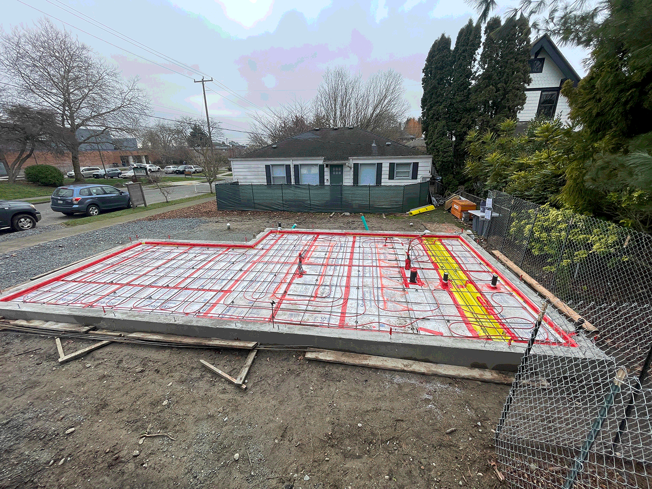 A Sanden SANCO₂ heat pump provides both domestic hot water and hydronic radiant floor heating. Using CO₂ as a natural refrigerant, the system delivers exceptional efficiency—up to four times that of conventional electric water heaters—while minimizing global warming impact. The system’s high output and durability support both performance and longevity.