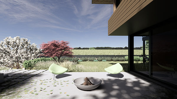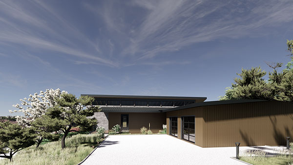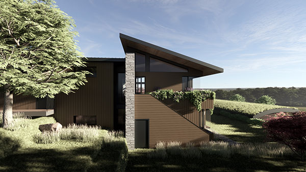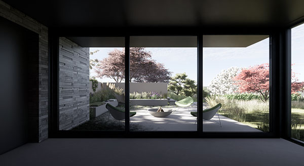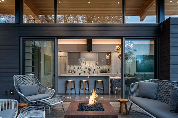 This high-performance building envelope includes strategically located, cross-ventilation through triple-glazed aluminum windows and doors, optimized insulation to minimize thermal bridging, airtightness, and vapor barrier control – all yielding better indoor air quality and increased building resilience. The lower floor concrete slab and uphill retaining walls act as a thermal mass, absorbing heat on hot summer days, keeping the garden terrace bedrooms cool at night. During the winter, this same concrete slab radiates hydronic heat, ensuring year-round, seasonal comfort.