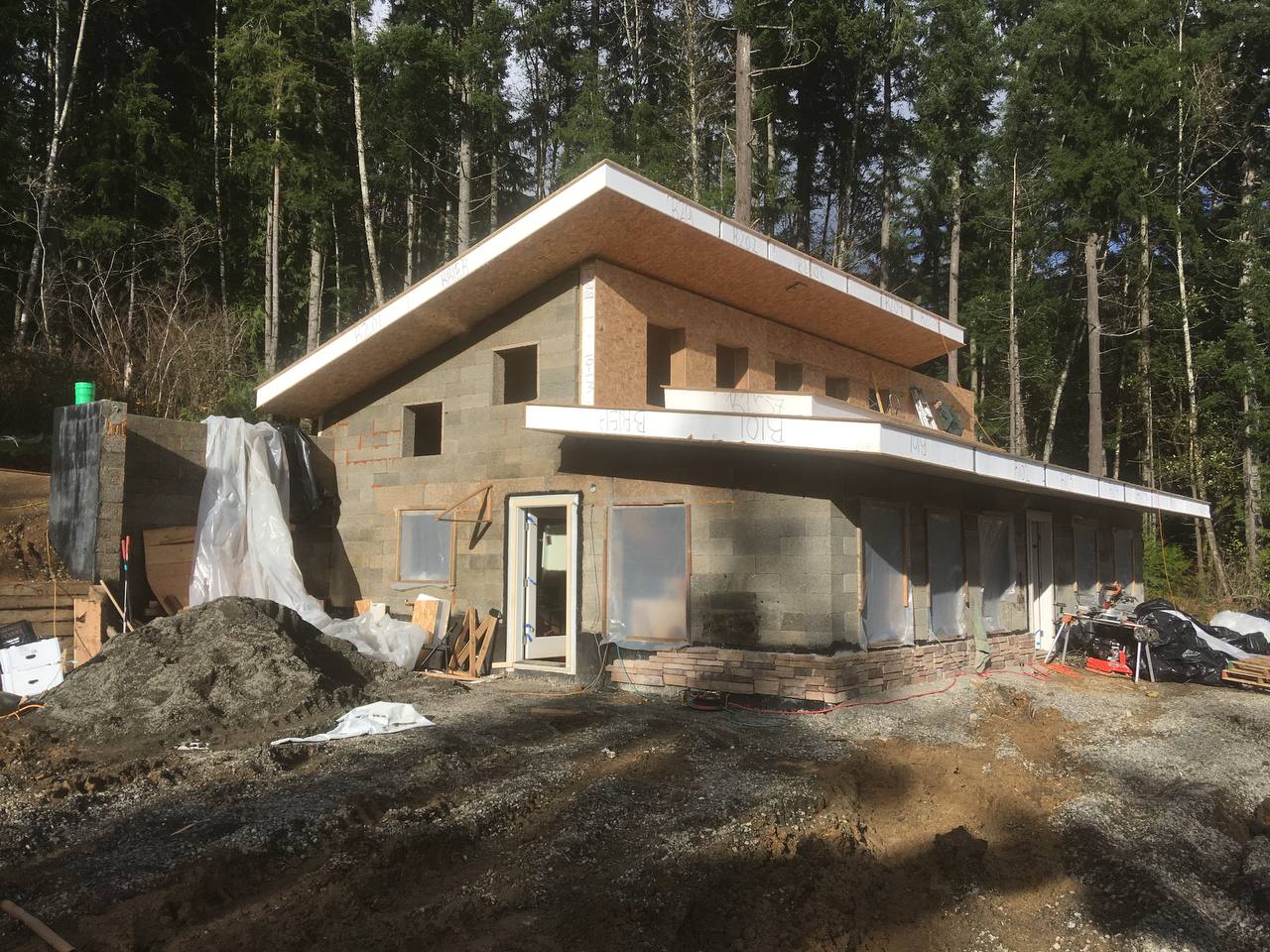 + Natural ICF (insulated concrete form) Faswall blocks from Shelterworks stacked to form exterior shell.