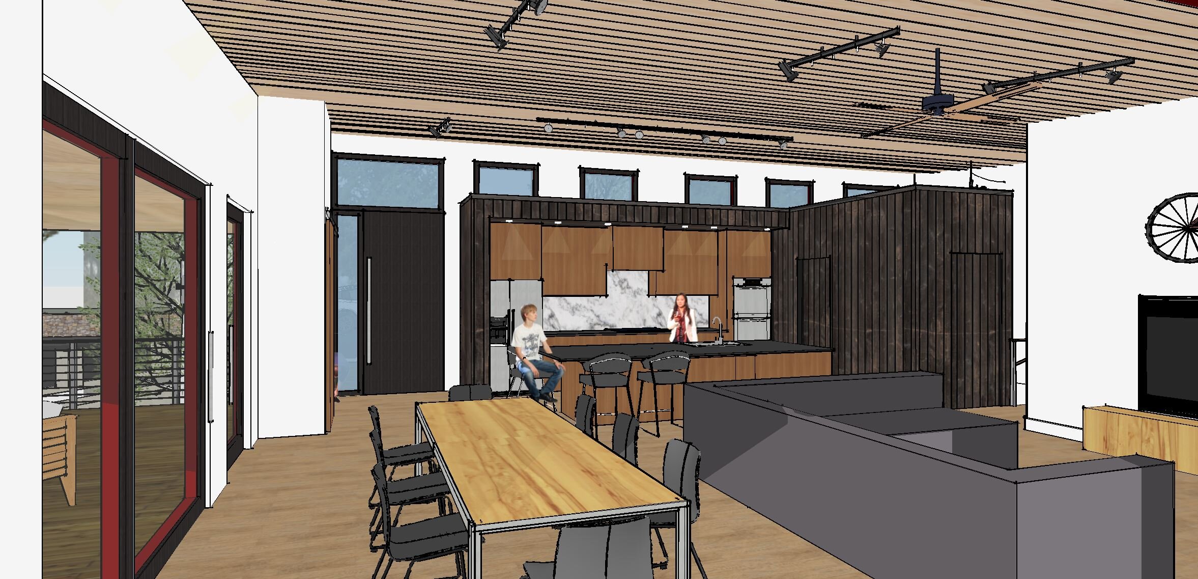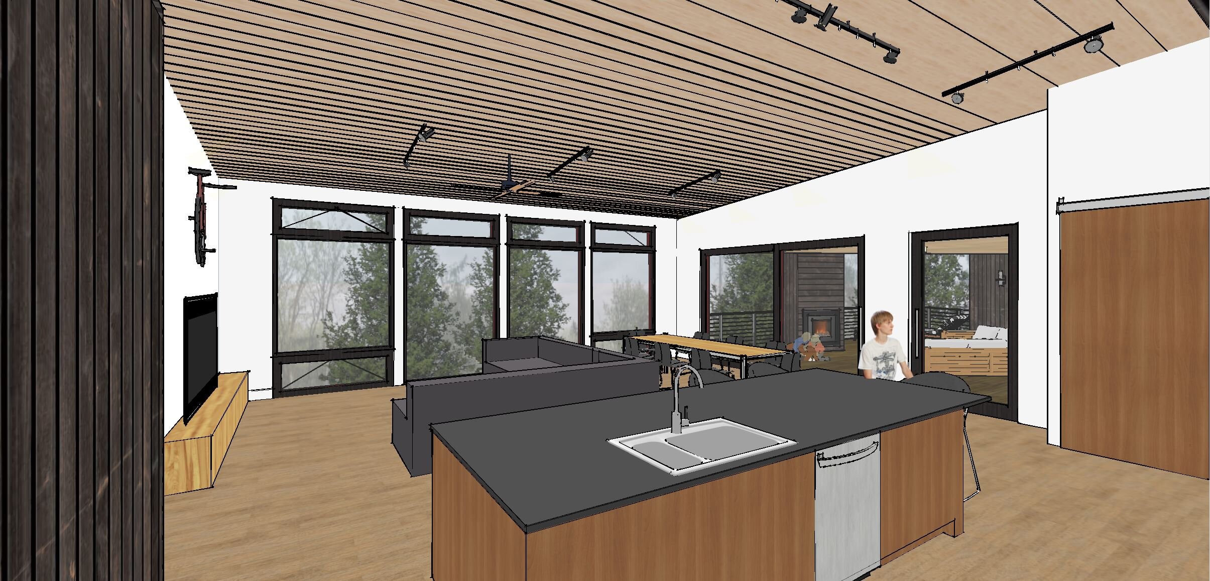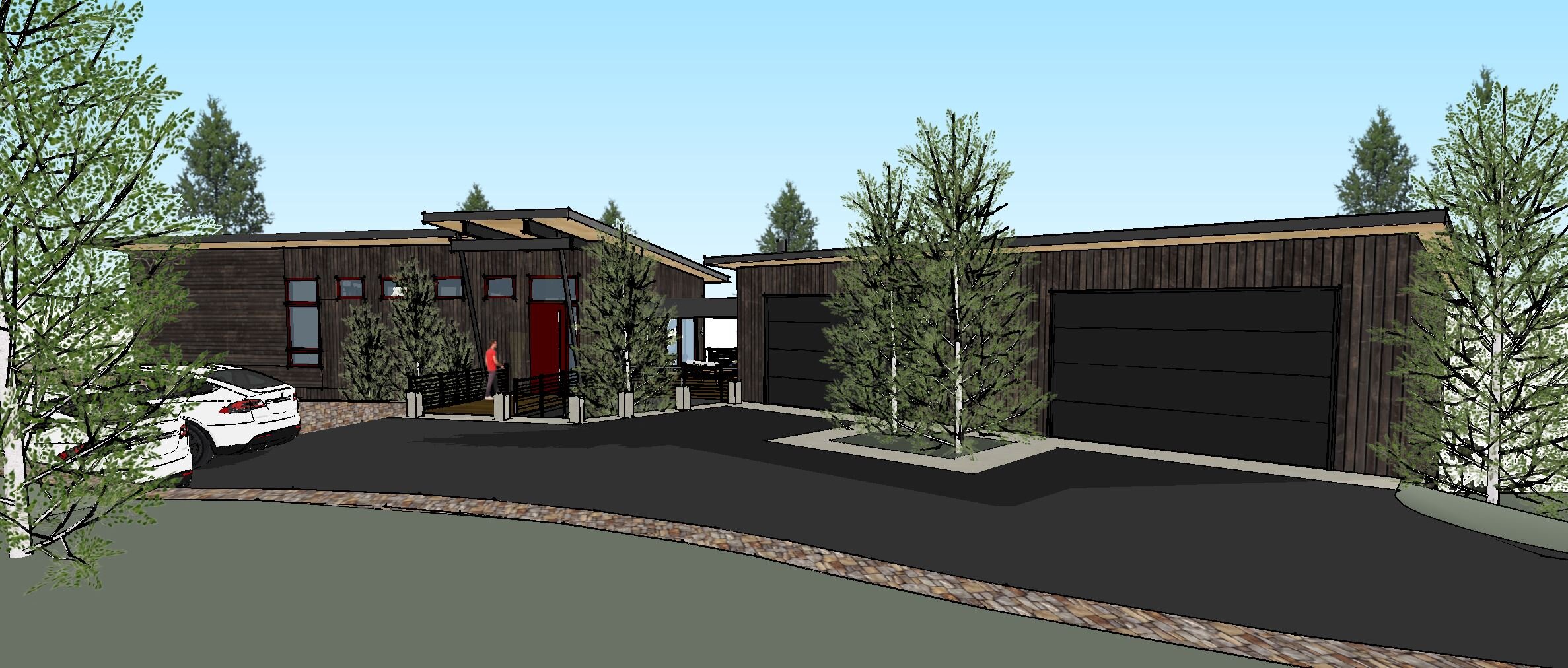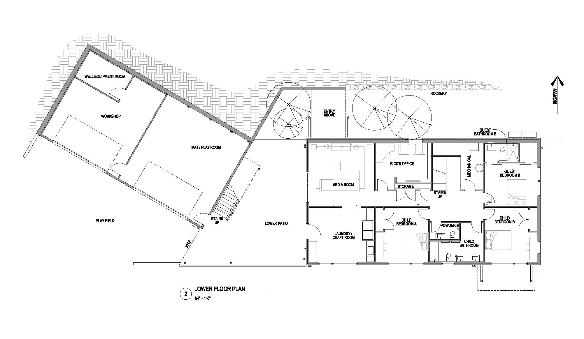 Layout of the house, laundry hook ups, curbless shower, and grab bars allow for aging in place. Shou sugi ban siding and metal roofing virtually eliminate exterior maintenance and allow the structures to blend into the landscape. An indoor climbing wall allows for kids and adults to engage in the sport even in the rainy season. The swimming pool is a converted shipping container heated with solar hot water.