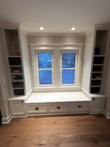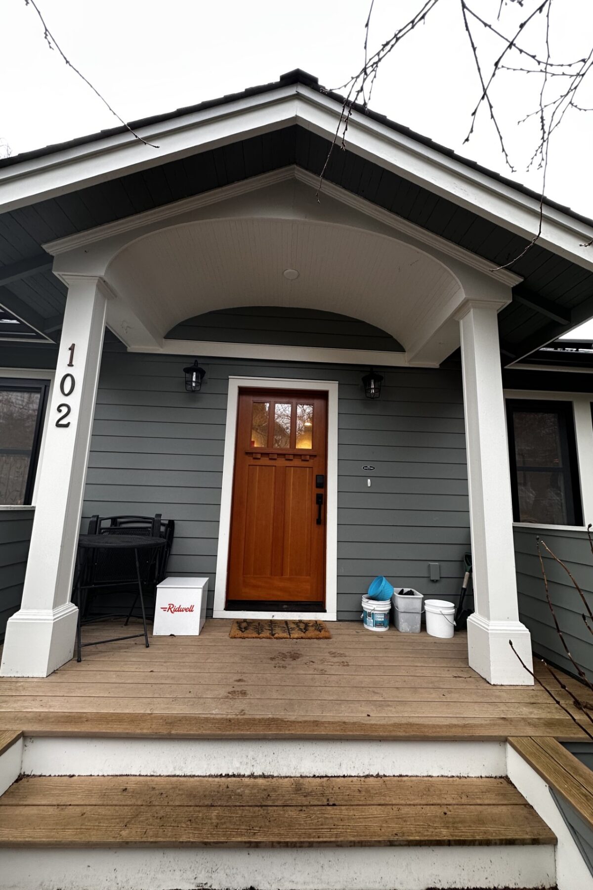 We sourced triple pane Unilux windows and maintained a Craftsman look with simulated divided light and trim details to fit the vintage of the house. Sprayfoam was added to the ceiling rafters and foundation walls and Cascade Aerobarrier did the additional seals on the house to get us down to 0.9 ACH. Balanced Ventilation is provided by 3 pairs of Lunos fans throughout the house. On the original house, we added carpentry touches to the entry way, front porch and staircases while preserving the existing kitchen and bathrooms.