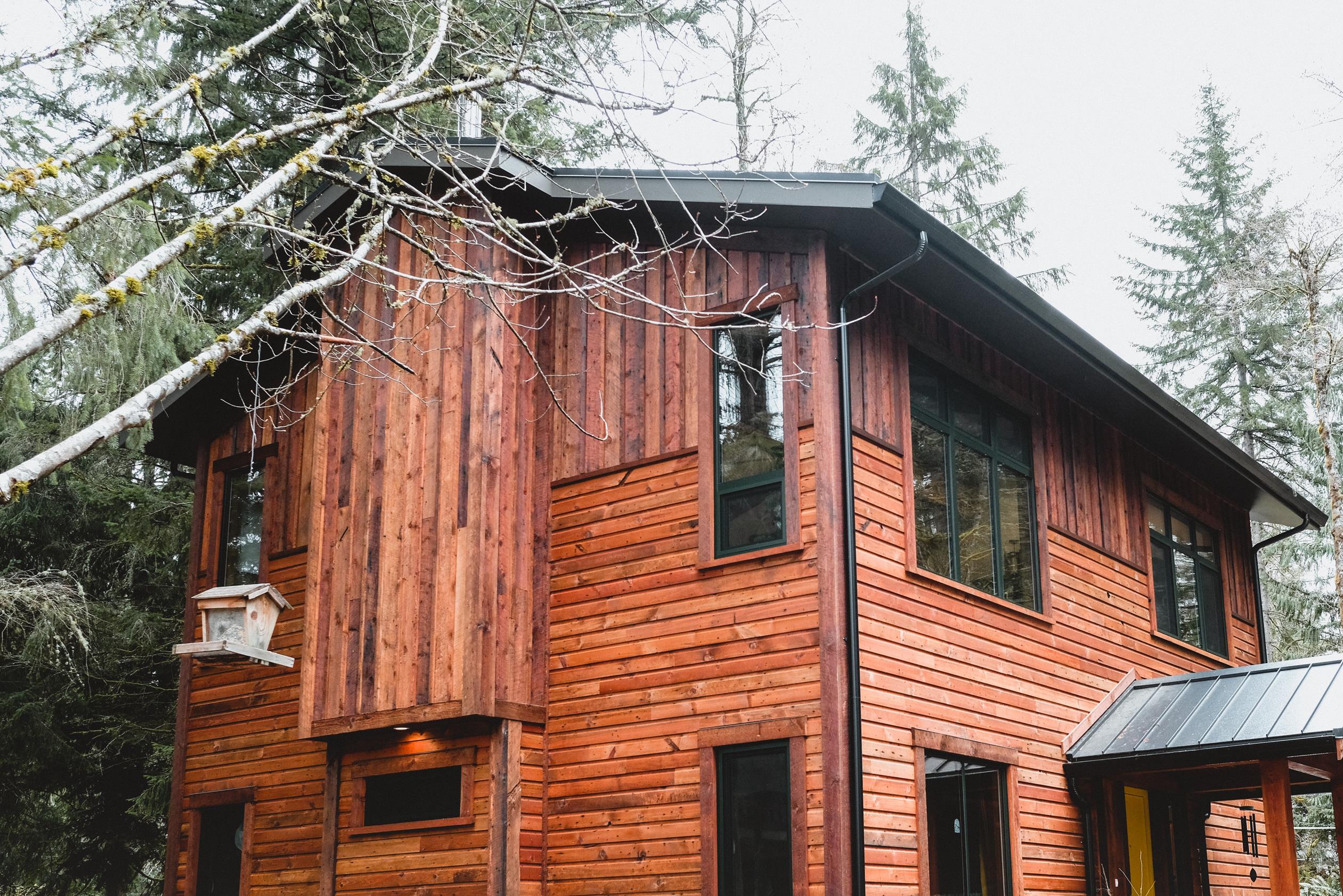 The material choices for the home were largely dictated by what was available from reclamation specialists at the time of sourcing and construction, you could say it was an organic process, which is the way Garrett prefers all of his designs to take shape. The majority of the framing lumber for the garage (Exterior and interior walls) and the house were sourced from a deconstruction project that the owner and Sno Valley Cottages were overseeing for a client in Snoqualmie, WA. That project involved the deconstruction of over 5,000SF of illegally constructed buildings and as much of the material that could be repurposed was. That deconstruction project was done by Seattle Sledge and reduced the need for virgin framing lumber significantly on this project. The siding as previously mentioned was reclaimed grain elevator material from Eastern Washington, this material was re-milled out of 2×6 and 2×8 rough-sawn fir, larch and pine and was then sent to AWI (Tacoma, WA) where it was remilled into Chinook profile ships lap siding for the house and garage, this siding profile is what is predominantly on the local barns in the Snoqualmie Valley. Additionally Sno Valley Cottages worked with Old Woods (Fall City, WA) for preparing the board and batten siding out of the same grain elevator material. A long-lasting oil based stain was chosen for this material to preserve it for as long as possible as the microclimate in this location is very wet most of the year.