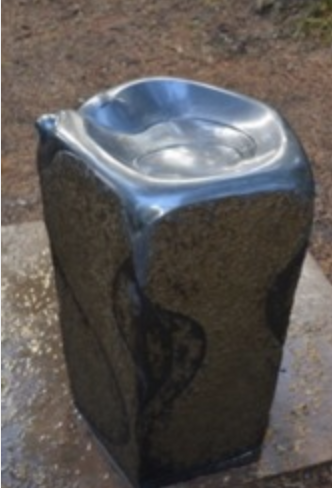 Our Sacristy Piscina (the special sink that empties into the earth for the consecrated communion wine). We contracted with a Native American sculptor to create an aesthetically pleasing outside piscina basin crafted from native basalt stone. It emphasizes the visual and theological connection between the altar of celebration/sacrifice and the earth.
