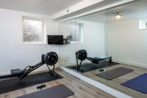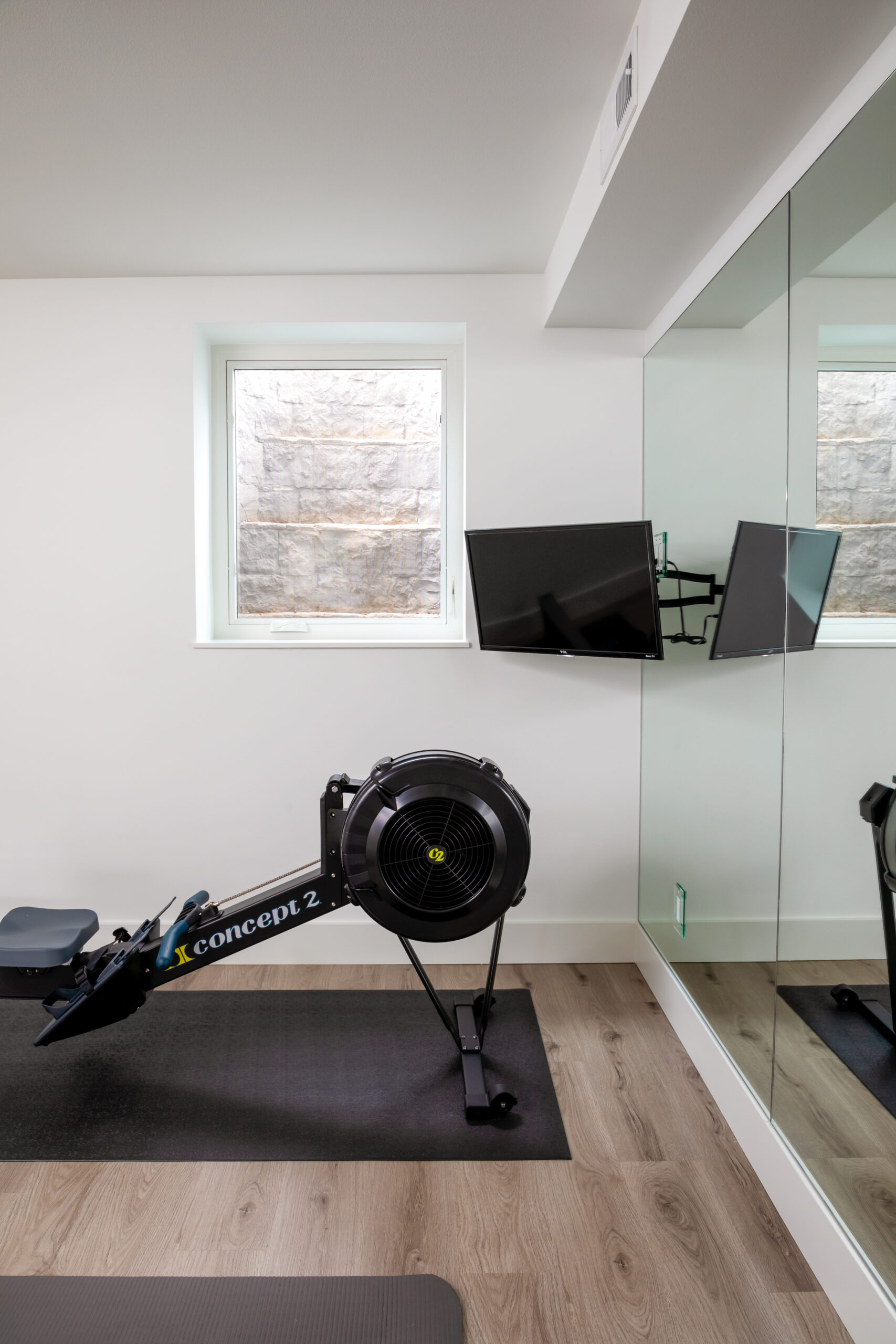 This daylight basement remodel presents universal design features, more modern utility, flexible productivity, plus it acts as a getaway space for exercise, relaxation, and overall wellness.