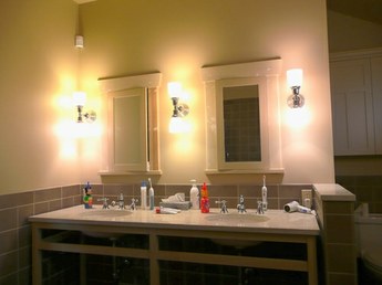 - Upper Bathroom counter: IceStone, a recycled glass and concrete product. Also, the slabs were partial slabs left over from someone else’s project, which prevented the slabs from going to waste.